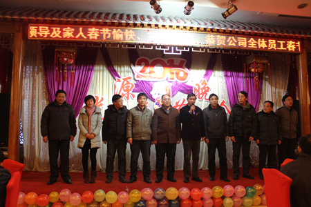 晚會(huì)開(kāi)始前,董事長(zhǎng)李成彬首先致辭。在致辭中,李成彬向全體員工恭賀新春,對(duì)2015年工作進(jìn)行了回顧,對(duì)2016年工作進(jìn)行了展望和描繪。接著,公司領(lǐng)導(dǎo)李成彬、劉迎波、邵東坤、李友民一起上臺(tái)向大家拜年。公司各部門經(jīng)理一起上臺(tái)給大家拜年。恭祝大家新年快樂(lè),猴年大吉,闔家歡樂(lè),萬(wàn)事如意。