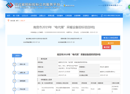 7月23日我公司(河北光源太陽(yáng)能科技有限公司)在南宮市2019年“電代煤”采暖設(shè)備招標(biāo)項(xiàng)目的競(jìng)標(biāo)中,憑借過硬的產(chǎn)品質(zhì)量,扎實(shí)高效的工作作風(fēng),卓越的運(yùn)作團(tuán)隊(duì)和良好的企業(yè)信譽(yù),以絕對(duì)的優(yōu)勢(shì)順利中標(biāo)。